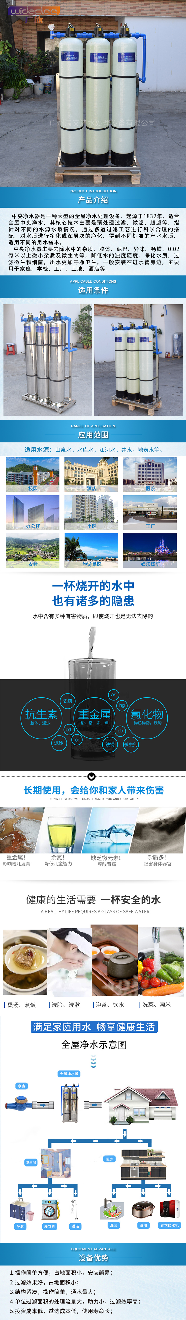 中央凈水器是一種大型的全屋凈水處理設(shè)備,起源于1832年,適合全屋中央凈水,其核心技術(shù)主要是預(yù)處理過濾,微濾、超濾等,指針對不同的水源水質(zhì)情況,通過多道過濾工藝進(jìn)行科學(xué)合理的搭配,對水質(zhì)進(jìn)行凈化或深層次的凈化,得到不同標(biāo)準(zhǔn)的產(chǎn)水水質(zhì),適用不同的用水需求。