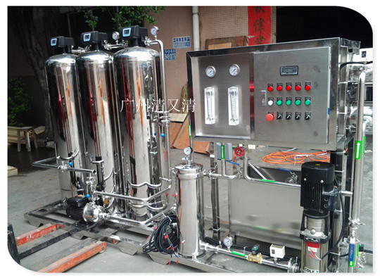1.預(yù)處理系統(tǒng)一般包括原水泵、加藥裝置、石英砂過濾器、活性炭過濾器、精密過濾器等。主要作用是降低原水的污染指數(shù)和余氯等其他雜質(zhì),達(dá)到反滲透的進(jìn)水要求。預(yù)處理系統(tǒng)的設(shè)備配置應(yīng)該根據(jù)原水的具體情況而定。